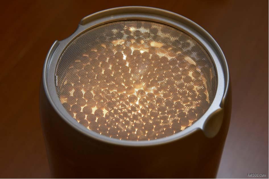 圆筒状造型的RIO-5II要如何产生负离子呢?原来在RIO-5II的顶端佈满了一层白色小圆珠,