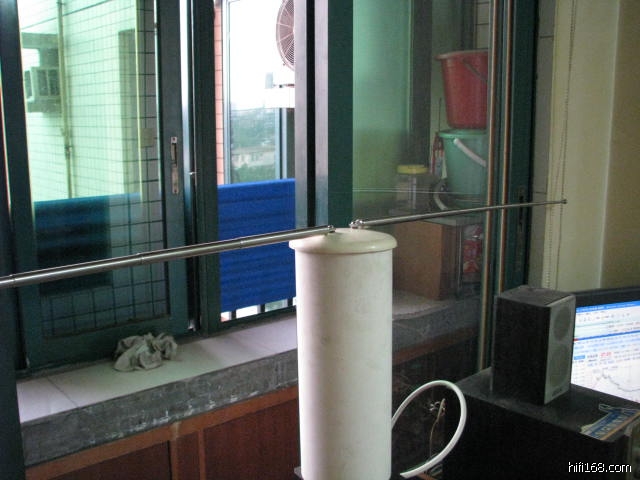 试听过程中有一个小插曲:开始天线是垂直放的,噪音没减少,信号还减弱了,颇为失望,只好换回原来的天线,后来不死心,又重新接线,改为水平放,哈哈,一天都光晒。