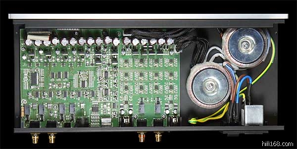雖然外觀簡潔且使用容易,但Model 192 DAC MK II內部可藏著厲害的設計,結合了世界三大頂尖數位晶片於一身。數位接收使用Cirrus Logic CS8416,最高可接收192kHz的數位訊號,同時具備非常低的時基誤差。數位昇頻採用Analog Devices AD1895,可以執行24bit/192kHz的昇頻取樣。而關鍵的數類轉換晶片則是德州儀器的PCM1796,而且North Star Design一口氣用了兩個,把立體聲DAC當作單聲道來用,不僅聲道分離度更高,同時也代表Model 192 DAC MK II走全平衡架構。以前的Model 192只有RCA非平衡輸出,現在則增加了平衡輸出,而且是真平衡,所以PCM1796一次要用兩顆從數位到類比,Model 192 DAC MK II走「雙單聲道全平衡」模式,類比放大則採「DC直交平衡輸出」,這一路全平衡的目的,是為了提高音樂動態範圍,廠方標示動態範圍達到124dB,這麼大的動態可以搖晃地板了。音樂動態範圍提升,同時要注意的就是安靜的電源供應,Model 192 DAC MK II使用了10組獨立穩壓,每一個IC晶片都有獨自的供電,完全部互相干擾。Model 192 DAC MK II還特別注意主時鐘(Master Clock),電源也是獨立處理,這對於消除時基差很有幫助。