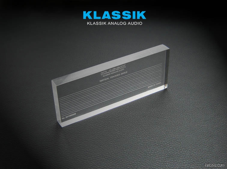 压克力制作的 VTA 垂直循迹角规尺,使用非常方便。直接放置于唱头唱臂一侧,观察唱头壳上端面与规尺刻度线平行即可。