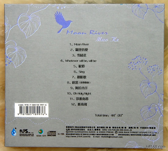 毛珂在雨林录制出版《乐海留声》、《青燕子交响诗》、《雨林制造》等系列专辑,个人专辑就有《美丽的夏夜》、《原色》,雨林最新出版的这张《月亮河》是毛珂的第三张个人专辑,经过前两张的锻炼以及在加拿大的深造,毛珂在这张专辑中的表现是最好的,声音更有自信、开扬,歌声悠扬、圆润,让人不用挑曲就一碟听完,可听性极高,值得收藏。