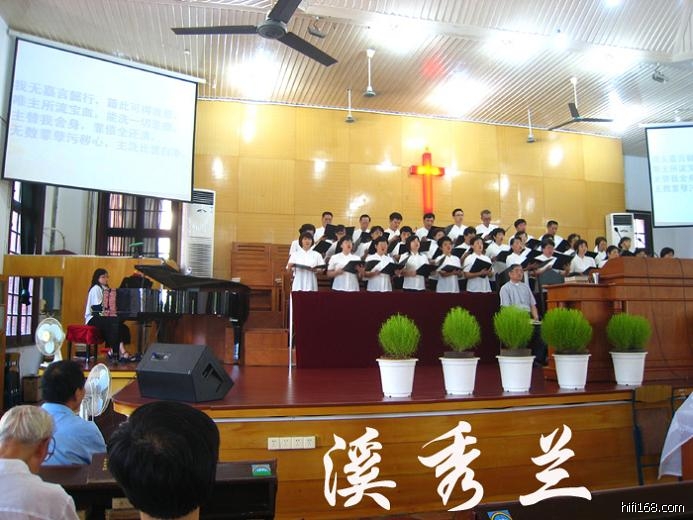 鼓浪屿的基督教“三一堂”正在做主日崇拜,敬拜神,唱诗班在唱圣诗,闽南话圣诗。