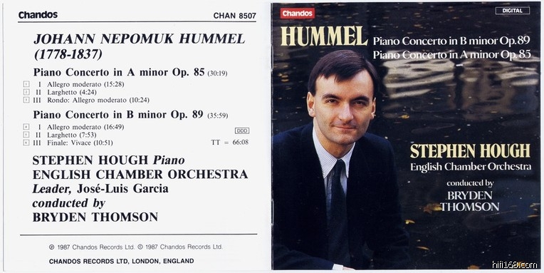 胡迈尔, 1778年生于斯洛伐克的伯拉第斯拉瓦,维也纳乐派钢琴演奏的最后的重要代表人物之一(另外还有莫舍萊斯 Moscheles, I.)。七岁移居维也纳,受莫扎特器重,收为学生并开始了为期两年的学习。9岁在莫扎特举办的一场音乐会登台演奏成名,并开始在欧洲巡回演出。在伦敦,他还受到了克莱门第的指导。15岁的时候开始学习作曲,在海顿的建议下曾向萨列里(就是Amadeus 里面的那个疯老头,电影里把他丑化了)学习。26岁当了艾森斯達特(Eisenstadt)的埃斯特哈奇(海顿的老主顾之一)王子的宫廷乐队长一直到他32岁。后来因为被指责不忠于职守而被解职。在这段时间里,因才妒心生,他曾经和贝多芬有很大的过解。1827年,胡梅尔于维也纳探望了临终前的贝多芬,两人终于化干戈为玉帛。胡梅尔在之后的纪念音乐会上按照贝多芬的遗愿即兴演奏了贝多芬一些作品。当然,胡梅尔也在那时认识了舒伯特。舒伯特的最后三首钢琴奏鸣曲题献胡梅尔,可惜出版的时候两位作曲家都已去世,所以由出版商转献给了舒曼。