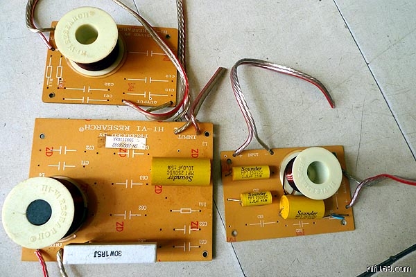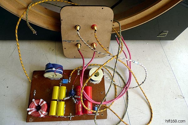 原分频器用料很一般,看来只是满足测试要求而用料,没考虑对音质的影响。要大改变最关键的就是把发烧理念注入到新的分频器中,在原网络上略作修正:老高频衰减用的是热敏电阻,它随着电流的大小而调整高频的量感,改用3.3欧固定的金属膜电阻听感合适,中频衰减电阻由1.5欧增加到2.5欧,量能正好,低频电感换成单晶多股无氧铜空芯电感,电感值没变内阻变小,有利于低频的瞬态效果,所有的交耦电容都用MPK音频专用的,每只都听过“方向”后再使用。重头增加了“电容偏置电压技术”,这是出乐出彩的关键,该技术是新德克的独门绝技,咱移植过来用用。