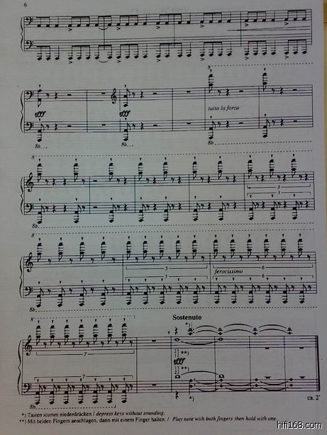 第一首除了最后一个音整部作品都是用一个A音构成,非常有意思,从头到尾(最后一音除外)用一个音来作曲可能这还是第一次,不同的音区不同的节奏和织体,利盖蒂寻找一种新的作曲方式,其中的几段相当精彩。几年前听说某音院的作曲系有人用一个A写了一个作品还获了奖,估计是COPY这个作品。每学期我都会给学生介绍这个作品,本来利盖蒂练习曲唱片里有这个录音,后来买了一张利盖蒂的唱片,这个作品是用管风琴演奏的,音效比钢琴丰富多了,就像一个交响乐队。