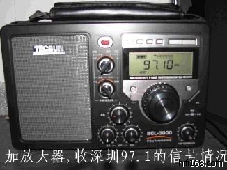 2)在相同的情况下,接上放大器,如下图,同样的97.1,现在已经是满格信号,声音非常干净,背景噪音一点都没有;