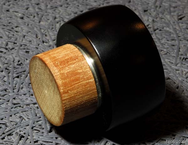 改版后的Nerva中钉在摆放上的要求更为严格。记得老款中型避震钉的小头向上时两端的延伸更好;大头向上能量则会往中间略有回收。可是这次我却得到了截然不同的感受——小头(木材)端向下摆放效果最好,而当反方向摆放时出来的声音竟然可以用“残忍”来形容。仔细思索一下,设计者在大头端攻出了丝扣无非是让用家以螺栓与器材连接的,看来木端朝下的摆法才是正道。另外我发现在木料外层套的黑色金属桶对声音也有些影响。大概加这个金属套是为了使整体效果更好看,而设计者又似乎用了某种胶水试图把这金属套桶与木料粘结起来,可是好奇的我竟然把套筒给拔掉了!拔掉金属套桶后再加持在器材下竟然声音更为直接了,我个人比较钟意这种玩法。