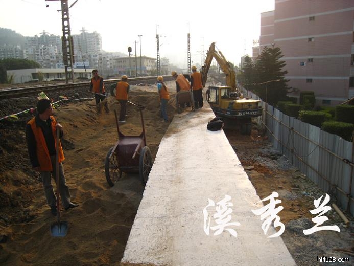 快完工了,为当地居民小区修了一条水泥路,那些高高的柱子是声屏障,隔音用的。执勤岗哨已经撤离。