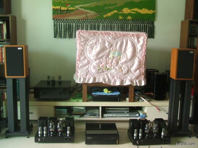经过两晚连续的通宵测试调整,终于实现靓声飞跃!现在满功率(20W)推JBL4425,没有感觉明显的听觉失真,在没有调整前当开到12点已经失真!看来这两晚的功夫没有白费,令20W的300B推挽达到晶体管80W甲类的输出控制力了!