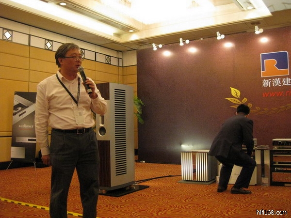 白天鹅音展随手拍的一张新汉展厅的照片,柏林之声的后级,音箱下面也都垫了石板: