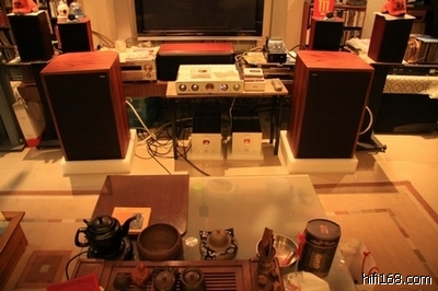 回家急吼吼地开箱,崭新的箱子,做工不错,木皮很漂亮,深褐色的网罩颜色有点复古味道很喜欢!低音单元刷的胶还有点粘粘的,接上器材,由于打的是试婚的主意,没有准备脚架,暂时就委屈坐地上吧.音源是哈曼HD970,功放是声雅的T1/T100,开声第一感觉就是中低频宽松的感觉,一直以来小箱子听多了,一直想换换口味!全频段平衡感还不错,担心的第一个问题算是放心了,中高频中规中矩吧,没有感觉到曾担心的中频凹陷偏薄的情况,听了半个多小时,LP回家了,处女的第一次就到这里了.