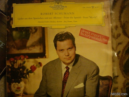 第三张,18655,有红头立体声版的。Demus钢琴伴奏的片子还算常见。 他在DGG的最好的片子是和Hoelscher的勃拉姆斯大奏,黄白黄加红标的。那张片子几乎就是等不到。