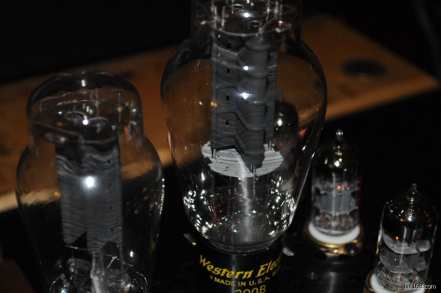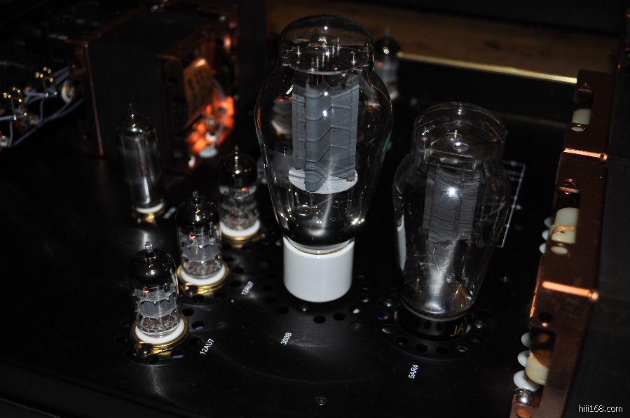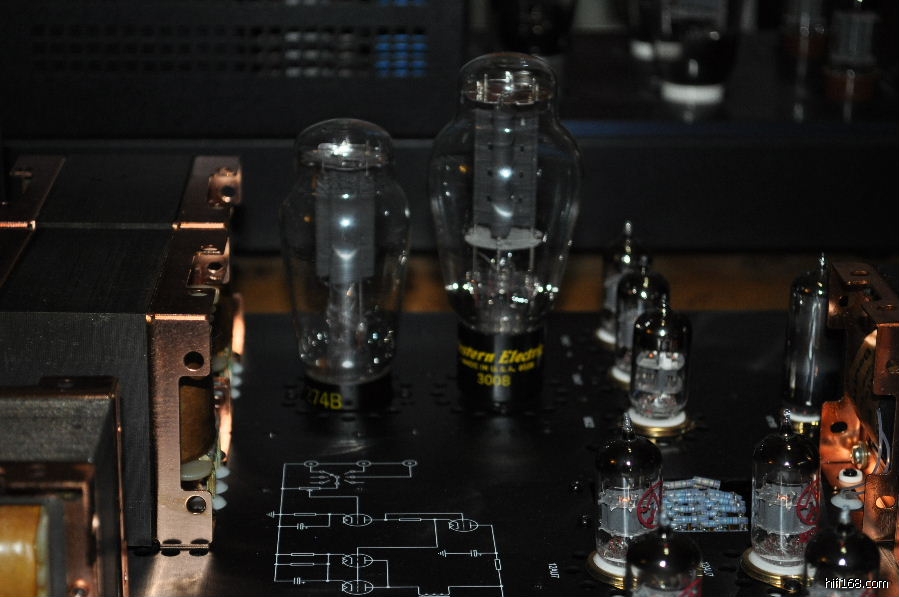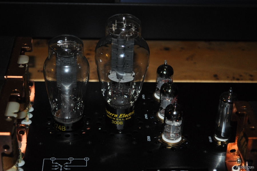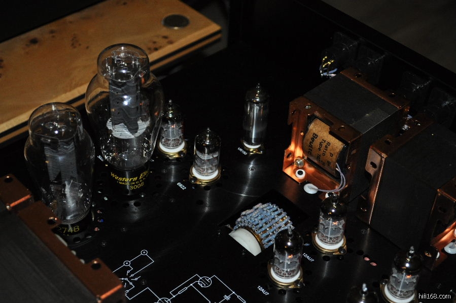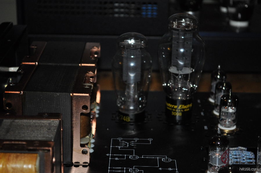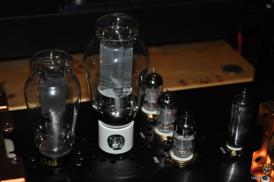 最为有趣的是在SN3008前级上比较数款整流管,包括跟机的曙光5Z4P,曙光T字特别版5Z3PA,大盾铁座GZ34,喜万年274B,军用喜万年VT-245,以及西电274B。经过比较,西电274B以全面的表现(解析力,层次感,动态,细致委婉的情感表达等)蟾宫折桂,紧随其后的是喜万年274B,虽然中高的细腻飘逸,清晰度,弹跳,和整体的音乐气质如果WE274B,但其他方面的表现非常接近WE274B,实为不可多得的一款好胆。而让人比较失望的是大盾铁座GZ34,其表现绵软无力,朦胧缓慢,声音比较木纳机械,完全体现不出英国极品整流管的风采。也许是我目前的系统搭配无法将铁座GZ34的优点发挥出来。