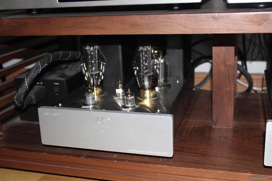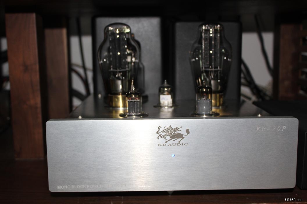 是中山永活的300B推挽后级吗?银色的金属拉丝面板比以前的黑色亚克力面板漂亮多了。那个“KR AUDIO”的LOG比以前的“ZERO”也更精致。