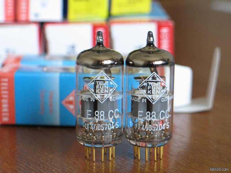 平滑斜支架版本德律风根E88CC是仅次于本厂CCa的世界上最好的6DJ8管。提供了无比平衡的声音,具有质感的低频,细腻的中频,和空气感、延伸极强的高频。具有绝对参考级的声音.德律风根乌尔姆原厂生产,底部带"<>".配对至3%以内。价格:2499元