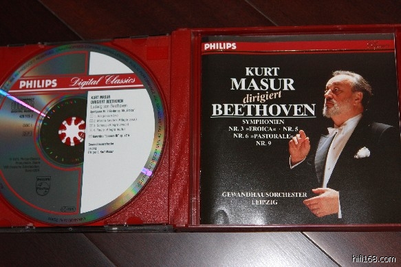 库特马苏指挥的贝多芬三五六九交响曲,德版PMDC半银圈碟一三如新,碟二两丝轻微细纹,无ifpi,3cds,280