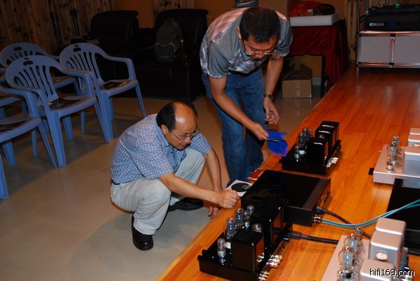 本次活动圆满结束了,最后以一副阿胆为此次活动前对器材的调试照片结束我的图片报道,是因为从此图中看出他对产品的热爱,对工作的严谨.传神产品因设计者用心去做才可以得以"传神",愿传神产品的道路走得更宽,更广,造福广大普通的发烧友,让他们玩上便宜的又好声的胆机!