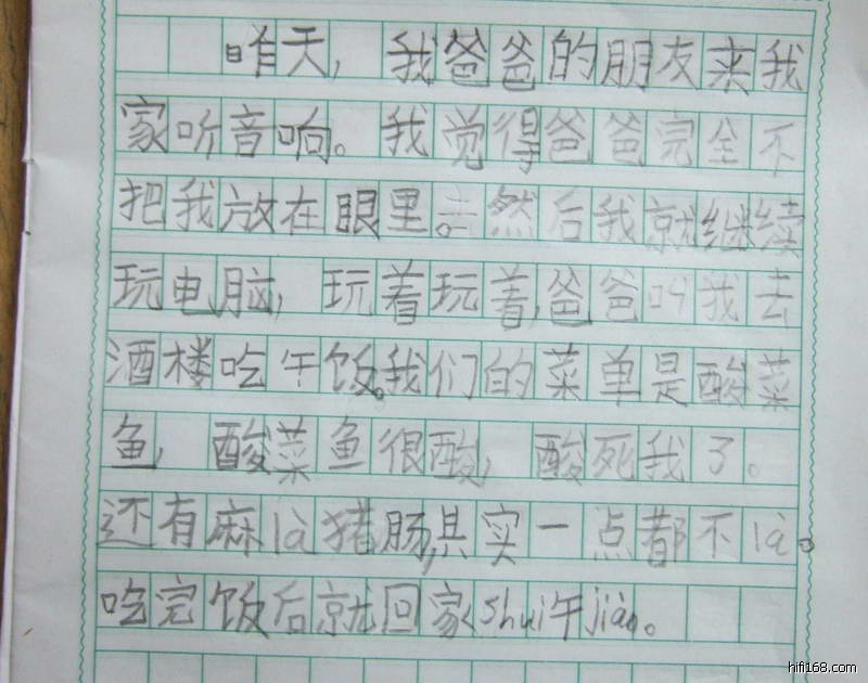 看来我平时太小时间辅导小ken了!他今年升二年级,日记中说的是上周日两朋友到我家听谭工调试中的功放。
