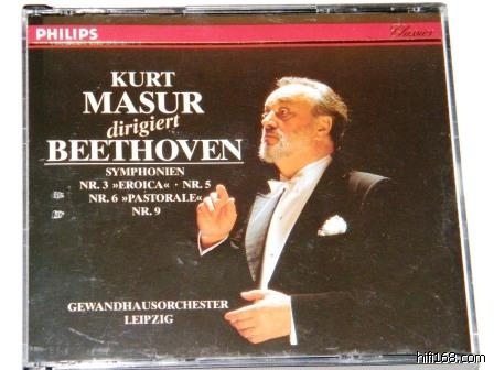 贝多芬标题交响曲集,No3、5、6、9&莱奥诺拉第三序曲,马舒尔指挥莱比锡布商大厦管弦乐团,3CD,Made in Germany by UML,半银圈,封面有两处小磨损,内册和碟片如新。180