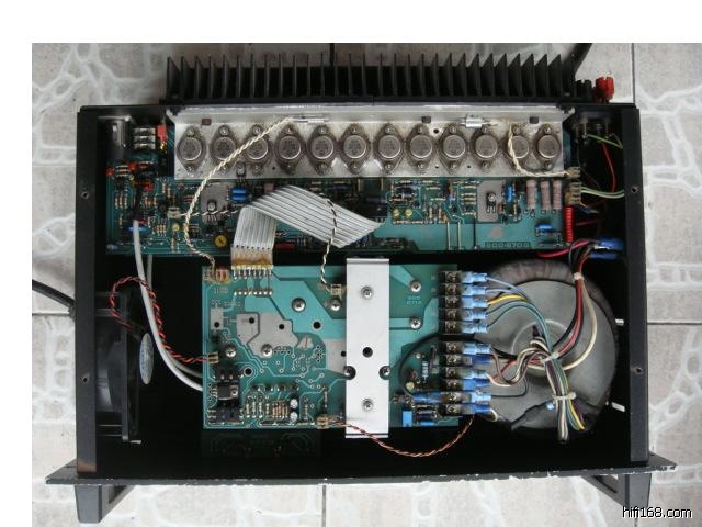 10:图片或详细描述: 2块独立功放板,各采用12只摩托罗拉金封管,共24只,4只大体积滤波电容。就是散热风扇的声音比较大。