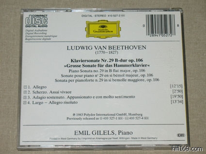 Piano Sonata No.29 in B flat, Op.106 -"Hammerklavier"  5    1. Allegro [12:24]  6    2. Scherzo (Assai vivace - Presto - Prestissimo - Tempo I) [2:53]    7    3. Adagio sostenuto [19:51]    8    4. Largo - Allegro risoluto [13:38]