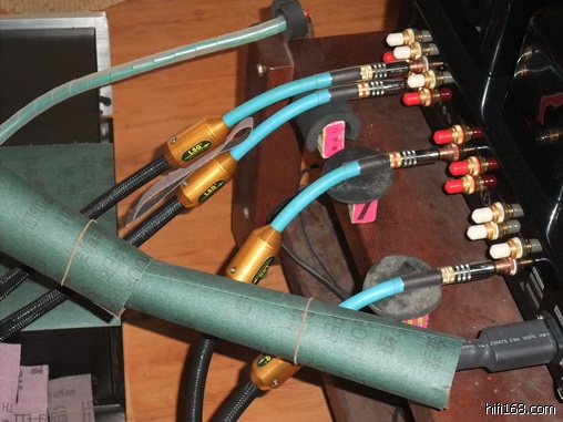 这是我的音箱线,VDH红衣主教是一条较中性、稍偏清淡的喇叭线,它算不上是什么顶级线材,老烧都知道它具有不错的口碑,我选用它是看中它较高的声音回报率及其和我的系统合拍的个性,此线在我的系统上用一条声音感觉不怎么样,可是用上双线分音后声效就三级跳。我曾向同好借过一条1万多元的某欧洲名牌音箱线(不是双线分音)PK过,整体声音表现没有完全超越此线,只能说是各有千秋。