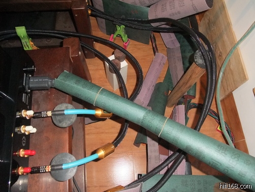 这是我的两对金银合金信号线。解码至前级和前级至后级这两对信号线都是100%的DIY制品,此线是我多年前在请当地一名资深发烧友家中听音乐时发现的好线,当时我被她超凡脱俗的声效所感动,特别是音色的名贵度绝对是一听中毒,经问物主获知此线制作成本不贵,于是就立马请此兄做了两对。后来,经我多次对线材外皮结构进行改良,声音效果更加完美。