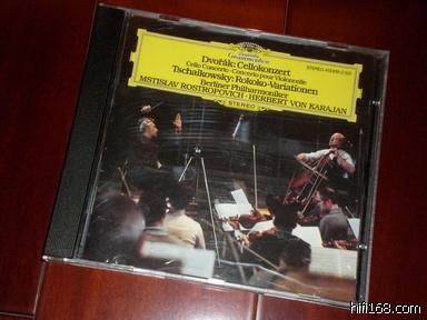 [size=2]15.  德沃夏克:大提琴协奏曲&柴科夫斯基:洛可可主题变奏曲。罗斯特罗波维奇大提琴,卡拉扬指挥,DG大黄标,满银圈无字无ifpi码,盘面显示法版PRS压片。文字面和数据面对光有一些细痕,内圈有使用痕迹,可完整播放。说明书侧面上册有被盒子卡扣压过。原盒裂可换新盒[/size]