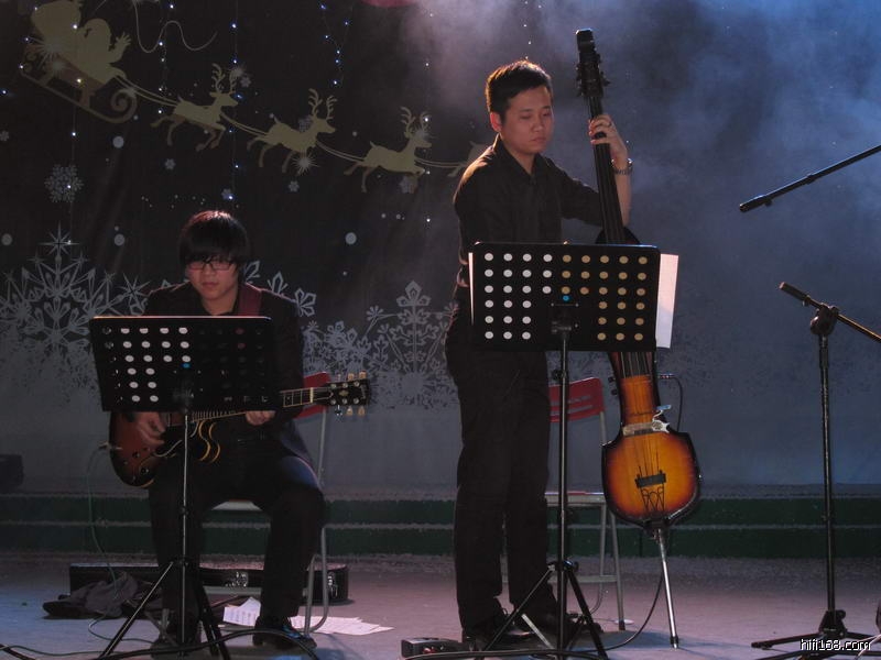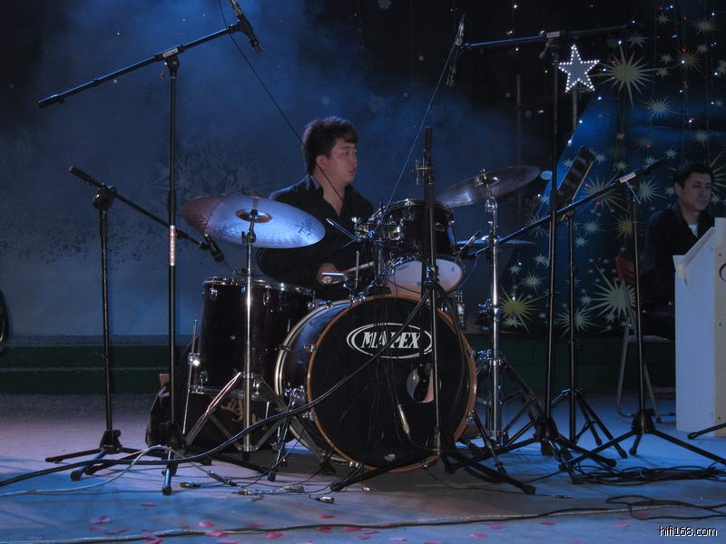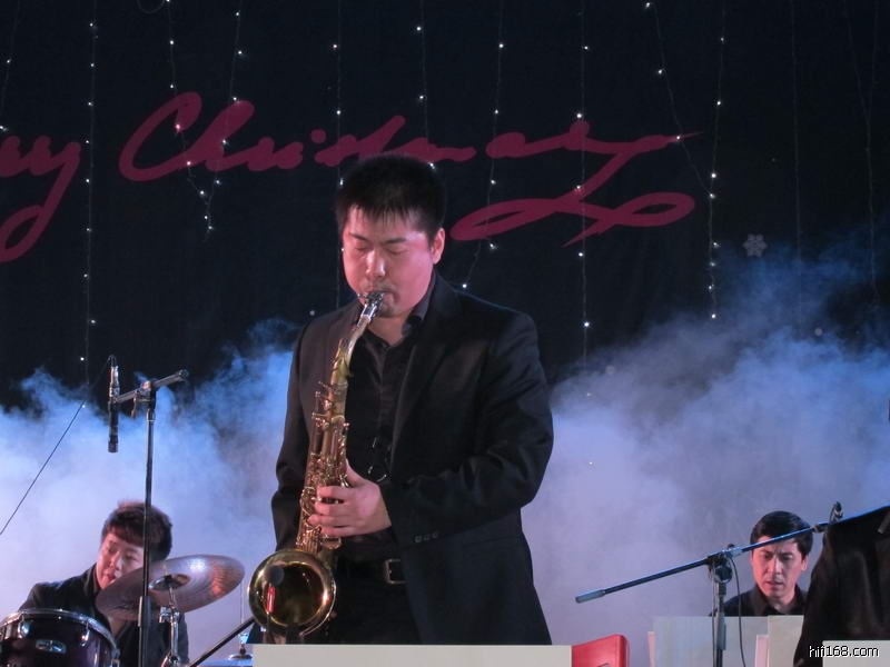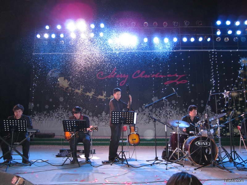 上图的MM演唱非常投入,手舞足蹈的,下面这些乐手也一样卖力:
