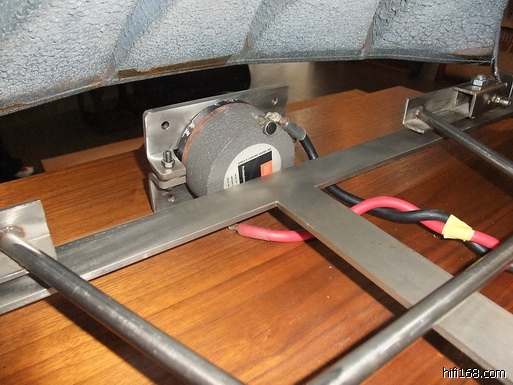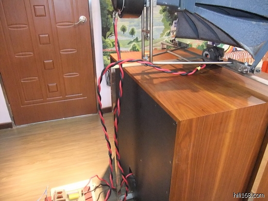 摆位的调整:老先生对高音摆位的调整中相对系统其它的调整比较简单,他说高音摆位的原则主要是把握准声音的相位和中、低音单元的一致性就可以了,这个摆位包括前后左右移动和仰俯的调整。现在其高音的位置基本上和中低音喇叭单元的发声点处于同一直线。我个人认为他的高音单元的化震措施处理得不够好,因为巨大的低音箱体单元工作时所产生的动能将影响到高音性能的正常发挥,对音质会产生什么样的后果我不说大家都知道。