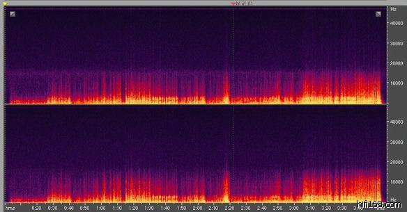 另外,如果您观察爱好者自己录制的所谓“高清音频”的频谱,您就可以看到,20KHz以上都是空的,但即便是空的,对于不压缩的wav文件来说,照样编码,照样填充文件尺寸,但是这种文件一旦进行压缩(无损压缩)你就会发现其压缩比例很大,并非一般情况的压缩一倍的关系,这就说明,这些所谓高清音频的空码率很高,除了站文件尺寸,对音质提升没有任何作用。
