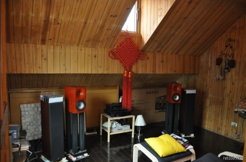 但是我听音室的墙和天花板是原木铺的,地板是木地板。