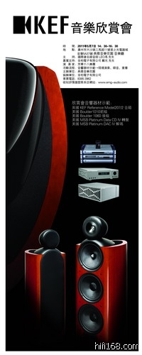 2011年5月7日将会举行英国KEF音乐欣赏会,介时将会播放多极张具珍藏价值的CD软件,并特别邀请“芳华十八”乐团到现场演奏并由著名录音师LEO冯先生进行现场录音并即时重播,让各位爱乐人士可亲身体验如何还原真实现场!门票有限,有意者请到典雅音乐花园免费索票!时间;2011年5月7日 14:30-16:30地址:广州市大沙头三马路11号星之光电器城首层5A37号 典雅音乐花园索票电话:83853962若需了解更多详情可登录本司网站:http://www.emg-audio.com/