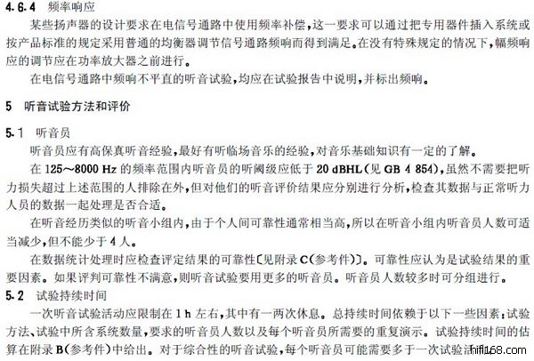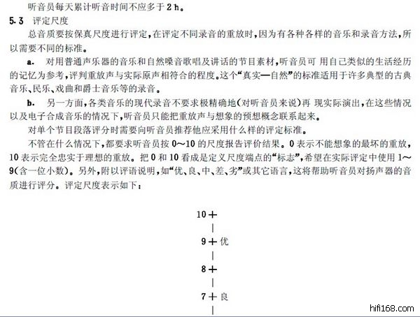 原帖由 松香味 于 2011-4-19 3:31:00 发表中华人民共和国国家标准:GB/T 16463-1996《广播节目声音质量主观评价方法和技术指标要求》(注:也适用于其他节目的声音质量进行主观评价时参考),文件共有十页。由于是PDF格式文件,不能上传到这里,请谅解。标准化的试听方法是一种科学的包括统计学原理在内的试听方法,他可以尽可能地减小试听结果的“离散性”并获得真实客观的试听评价。