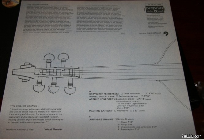 34、拉姆斯小提琴奏鸣曲等(小提琴比传统的体积略大),封背有梅纽因对此琴的赞誉,见图片说明。瑞典宝碟公司寥寥可数的小提琴作品早期大标立体声头版,录音极度惊艳,毫无夸张!品相NM-价格850元。现价600元