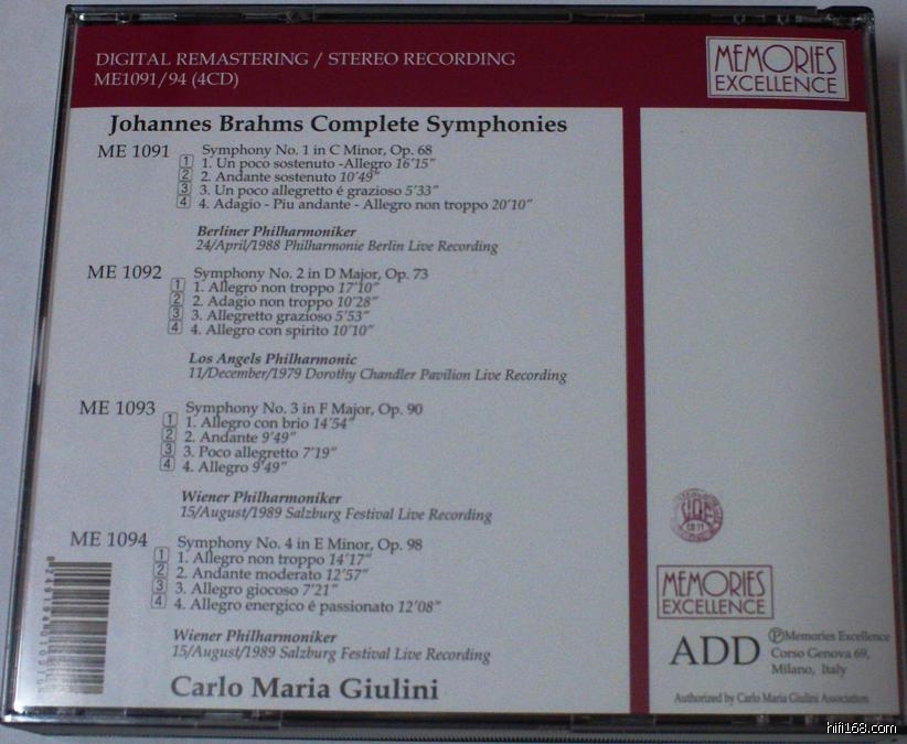 原帖由 Brucknerian 于 2011-5-8 13:23:00 发表今天终于收到了被Newton Classics 这家荷兰小公司再版(DG 正式授权)朱里尼晚年与维也纳爱乐录的全套勃拉姆斯交响曲以及两首序曲还好不是环保包装,封面也还说得过去。小册子中有 Richard Osborne 给力的新文章。有趣的是这套CD 完全按DG当年的4 张单张再版, 把盘放入光驱老版的封面就会出现