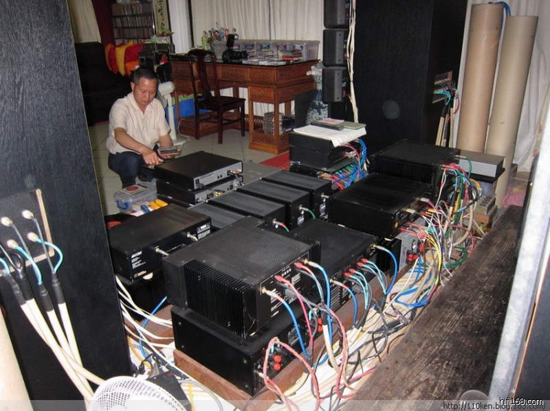这只17单元的音箱采用6路分音,每路都用单独的功放侍候: