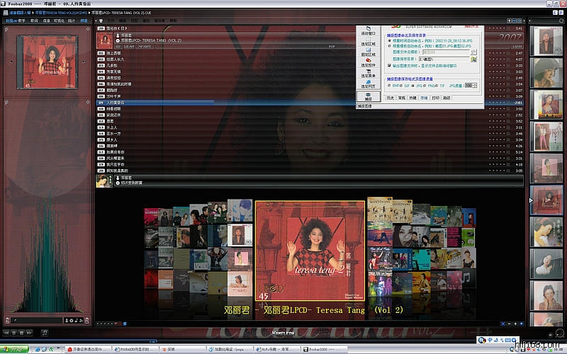 在音乐文件的目录下,放一个Front.JPG文件就行了吧?(具体大小要求没研究)尽量小点呗。需要点击菜单 View->Layout->Quick Setup 设定一下。