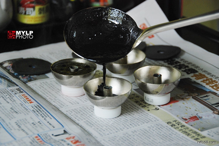 这个黑芝麻湖不会有什么实际的避震效果,做唱盘到现在,实践证明重盘加弹簧避震还是不二选择。所谓重盘加硬避震的理论不过一派胡言,根本没有什么避震效果,桌面微小的震动都会传递给唱头,因此建议兄改用简单的弹簧避震