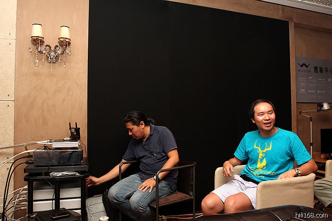 我参加的第二场,幸运地和dd431兄弟坐在皇帝位那里,总体的感觉是音场庞大,气势恢宏,尤其是峰哥所录的《断头台》片段,临场感非常强,定位,细节都很突出,听完后,我还跟峰哥开玩笑说,他应该让那些跟他在帖子里吵架的烧友们去听一场,也许就没人吵了,呵呵