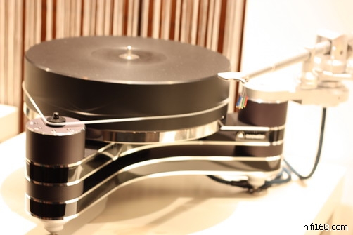 今年展会用CD示范的比较多,黑胶和数码存储就少些了.BRINKMANN的最新黑胶系统,用上了EMT定制的唱头,可能由于搭配的是德国物理的音响,个人不是喜欢次类型的音箱的声底,所以BRINKMANN系统的表现不能作准.