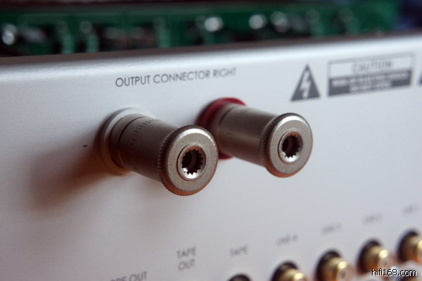 外观工艺没话说了,拉丝的铝合金机壳非常精致,也够厚,不像很多进口合并机用的就是薄薄的铁皮,还号称是使用了XX技术的避震材料。只是,我实在不喜欢那个圆不溜秋的音量控制旋钮,难看死了,像匹诺曹的鼻子!转起来手感也一般,不是那种很流畅的感觉,而是有一格一格的。说实话,要么就像步进式电位器那样一格一格很明确的,要么就像数字电位器那样带一定阻尼又很滑溜的,反正个人觉得这个音量转起来不爽。