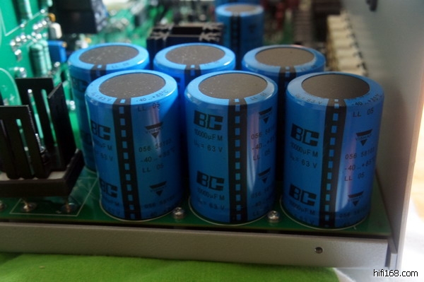 Thor的前级部分用了4个4700uF的滤波电容,后级部分用了6个10000uF的滤波电容,都是BC的