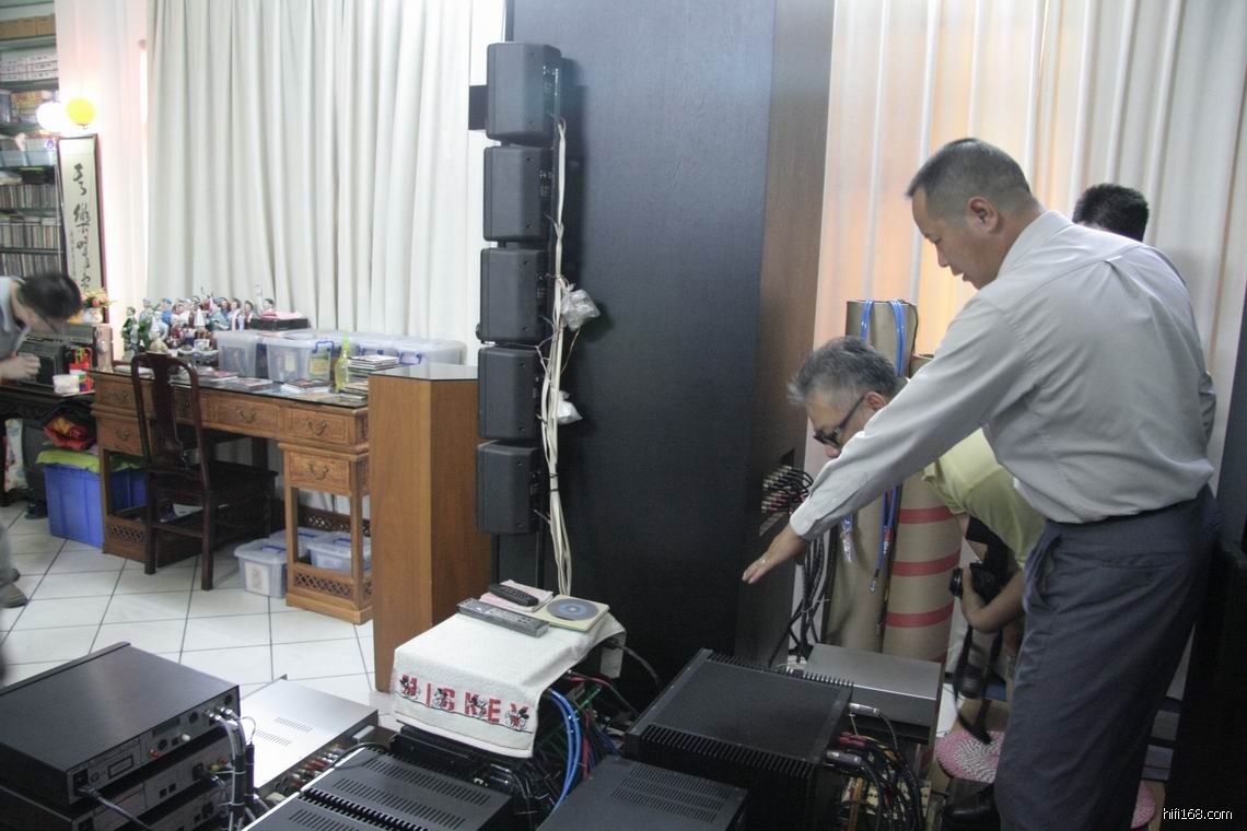 第三站是到做音箱都可以出名的牛人礼哥的府弟,礼哥的巨无霸组合本人感受最多,经过这几个月的不断改进调试,现在的改进是有目共睹,这么多嗽叭同时发声也非常协调,能做到宽松自然实在不简单。现在还多一对B&W DM3000成品名箱作对比,经过多次的反复比较,B&W DM3000和巨无霸音箱各有千秋,DM3000也不能立即取代巨无霸音箱的地位。大家都对礼哥的巨无霸感到惊讶,万元不到的成本,说有这样的音效实属难得。所以DIY的产品是经过不断的磨练改进才能达到好听性的产品,享受DIY的过程,才感觉DIY的乐趣。当天一众番禺顺德金耳朵发烧友对礼哥的巨无霞也作出肯定,对礼哥组合有这样的表现加以赞赏,也给了一些宝贵的经验给礼哥,希望礼哥的巨无霞有更进一步的表现。