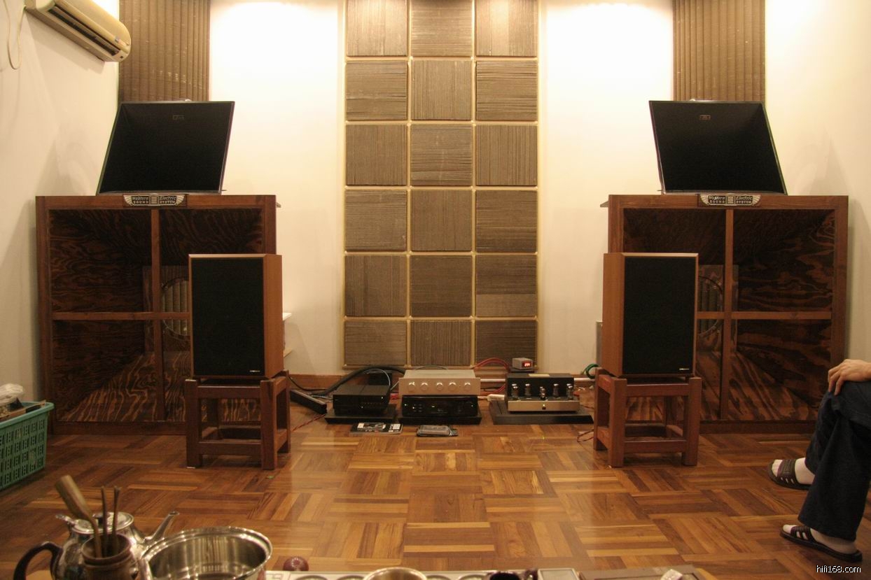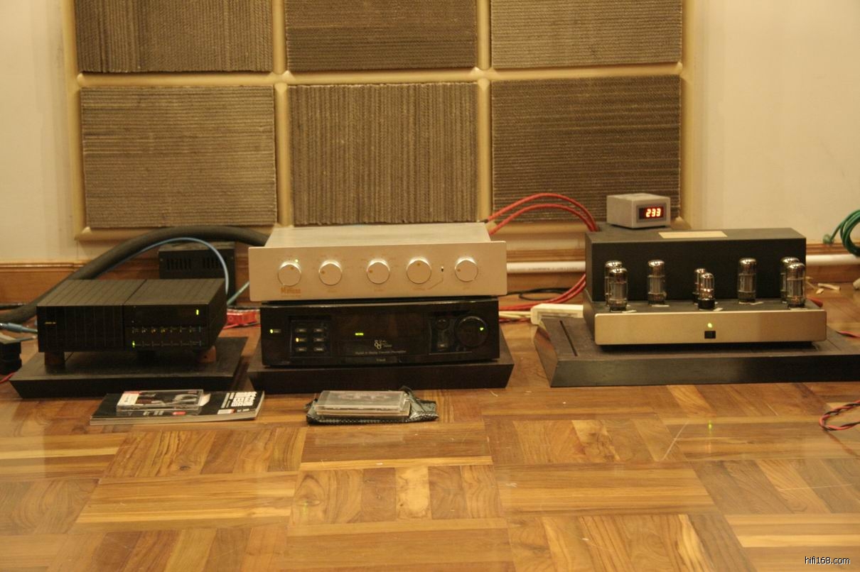 11月21日,我们一众人拜访了顺德的阿国哥,国哥的听音室因重新设计,要求我们过去试听比较和以前的区别。一进入国哥的听音室觉得非常简洁,把原来墙身体积厚大的木制扩散板拆去,换上简单而又有效果的自制纸箱片扩散吸音板后,听音室的四周围多出了十厘米左右,从而令整个听音室一下子宽阔了许多:现在系统明亮有活生感, 整体好了。国哥现的系统由:英国之宝 CD 转盘,马蹄诗的胆前级,美国“威马”CD解码器,美国 GOLDEN TUBE AUDIO SE40后级,先锋S-LH5号角二分频书架箱,整体给人有欧美风格,播放古典乐曲非常吸引人,舒服自然, 在这套系统日本先锋 S-LH5号角二分频书架箱一点没有日本箱偏薄的现象,是一对带有欧美风格的HI END书架箱,非常不简单。