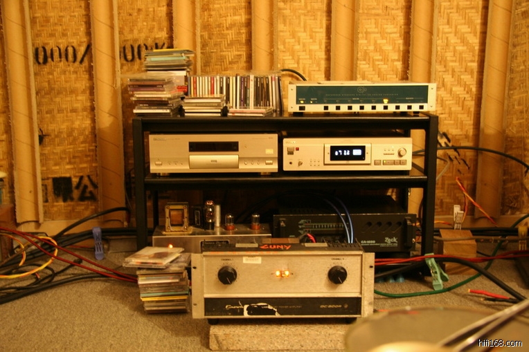 林哥的系统几经周折后,系统由:索尼CDP-XA50ES, 美国Cello CD解码器,电子管 6SN7两级直偶阴极输出前级,德国赛克功放,美国皇冠功放,B&W MATRIX TM1矩阵式书架箱。器材表现出人声饱满耐听,细腻顺滑不生硬的声音,但因这对 B&W MATRIX TM1书架箱比较难推,声音的密度和力度还有点欠缺。以前有试过用两台大功率单声道后级功放来服侍这对书架箱,感觉发出的低频与箱体不成比例,低频深厚无比,听得众人如醉如痴,是一对难得的好箱仔。