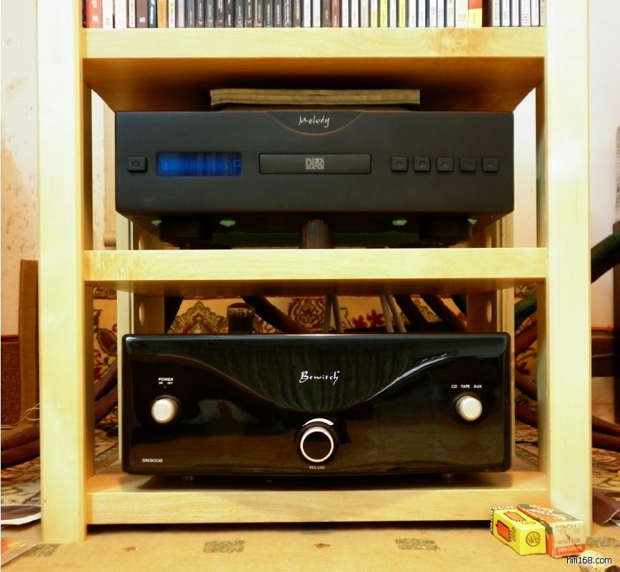 昨晚从5点半开始把玩这套DD直到深夜2点,也该写写听感了,呵呵。所有听感都是在我处对比我手上这台老是坏光头的Melody M10 CD 得来的,我这台Melody M10 CD是香港代理定制的特别版本,两个大方牛,交联电容也用到了 Jensen 铜管铜膜并铜管银膜!在我手上已有三四年,下过好多功夫,也换上了一支 大盾 大座 GZ34、一对50年代中期 valvo 喷碳管 ECC33,潜力基本已挖尽。