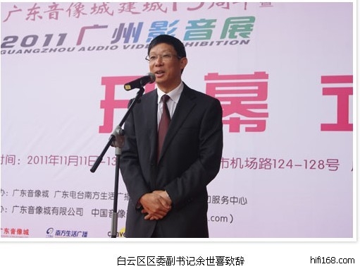 2011广州影音展今日隆重开幕,广东省新闻出版局副局长杨广锐致、白云区区委副书记余世喜等领导致辞。详情请登录:中国音像商务网http://www.cnave.com/news/view.php?aid=71