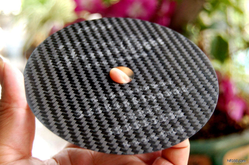 把黑色碳纤维那面朝下放在CD碟子上