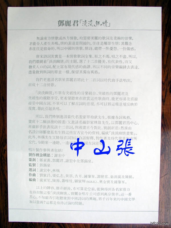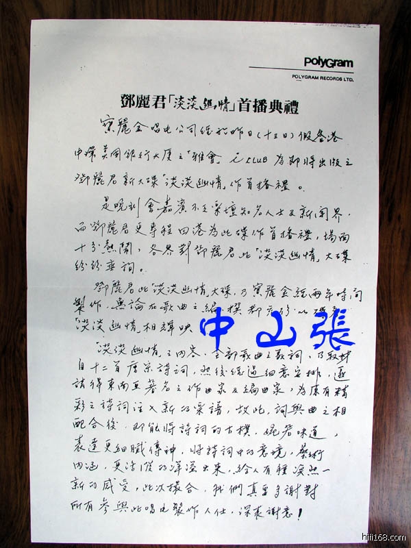 宝丽金《淡淡幽情》的母带肯定烧了,《淡淡幽情》当时香港记者发布会的说话稿和邓丽君的手稿档案现还在我手上。